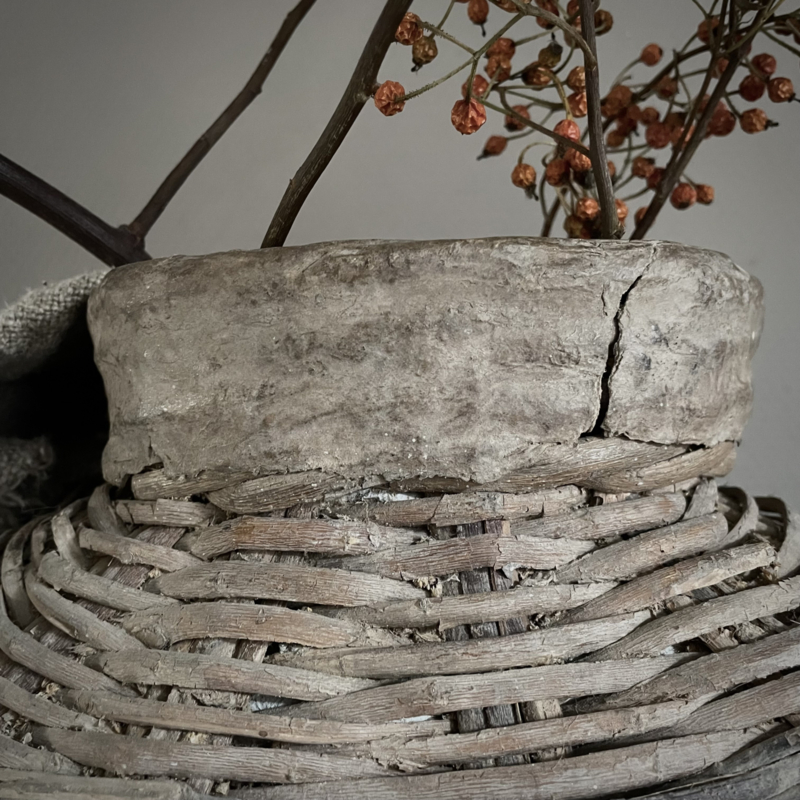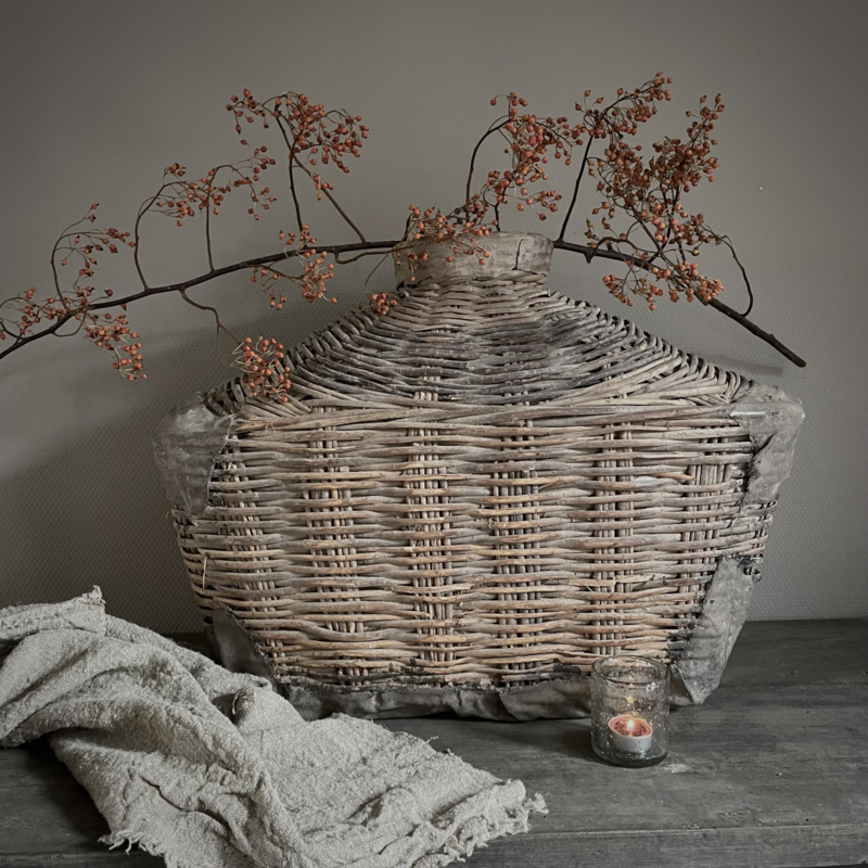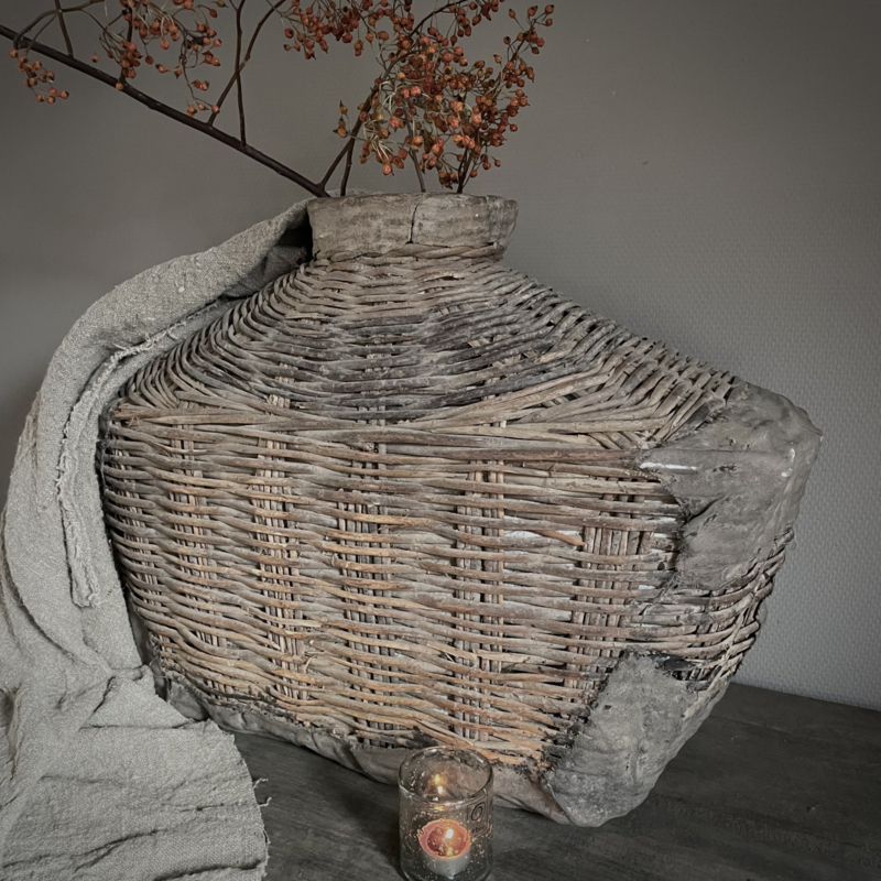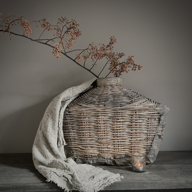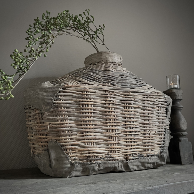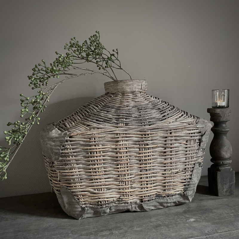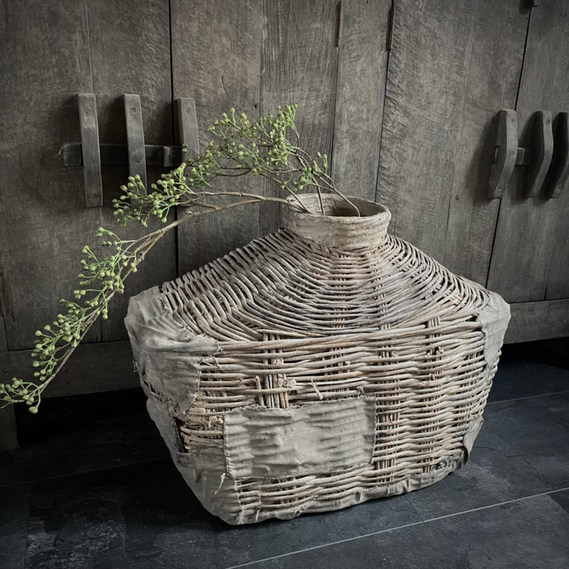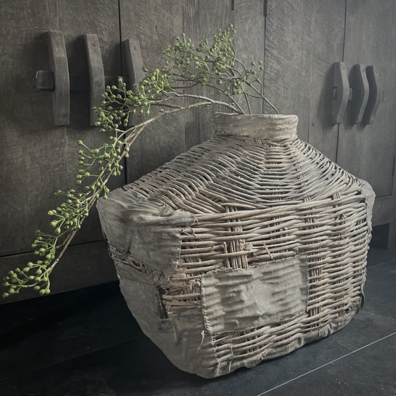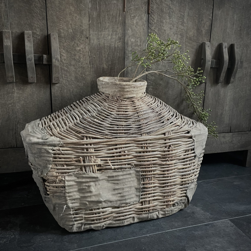 Deze originele vismand is afkomstig uit China, een traditioneel object dat werd gebruikt door vissers langs rivieren en rijstvelden. Deze vismanden zijn doorgaans gevlochten van natuurlijke materialen zoals bamboe, riet of wilgentenen. De mand draagt sporen van ambachtelijk vakmanschap: onregelmatige vlechtpatronen, natuurlijke kleurvariaties en lichte slijtage die getuigt van echt gebruik, dit maakt elke vismand uniek. Oorspronkelijk werd hij met een touw of band gedragen. Merk Be-Uniq. De hoogte is 50 cm, de breedte is 70 cm, en de diepte is 30 cm. € 159,95,- Deze mand valt ivm met omvang en gewicht in een hoger verzend tarief € 13,95. Voor bestellen mail: info@froedel.nl of whatsapp 0652326756