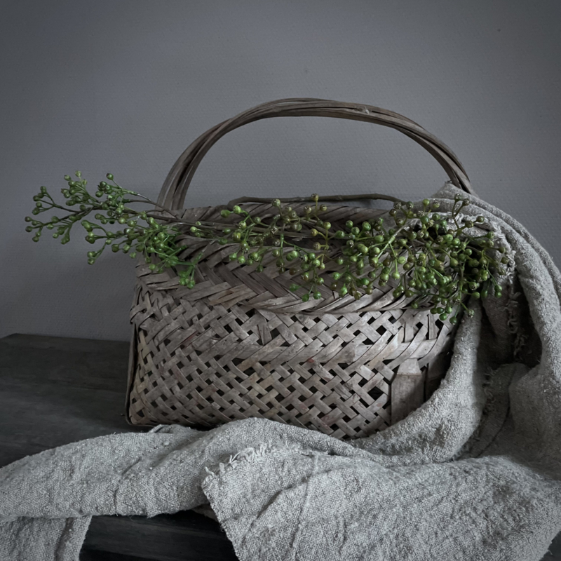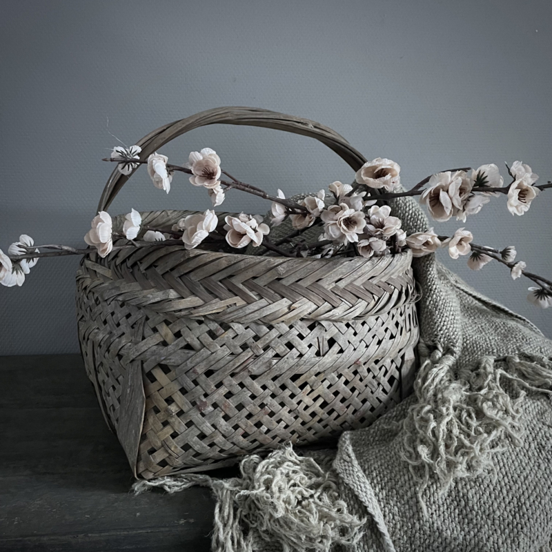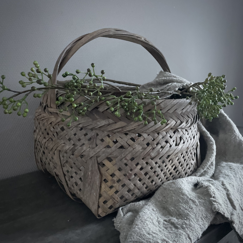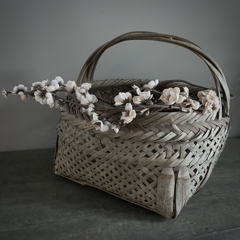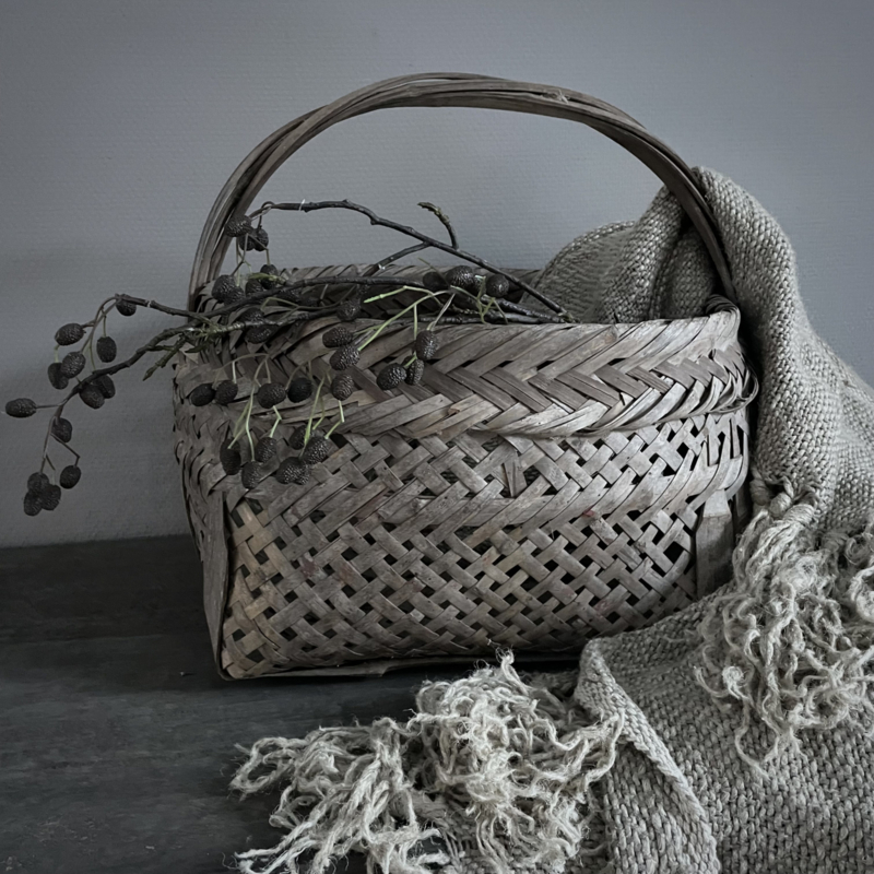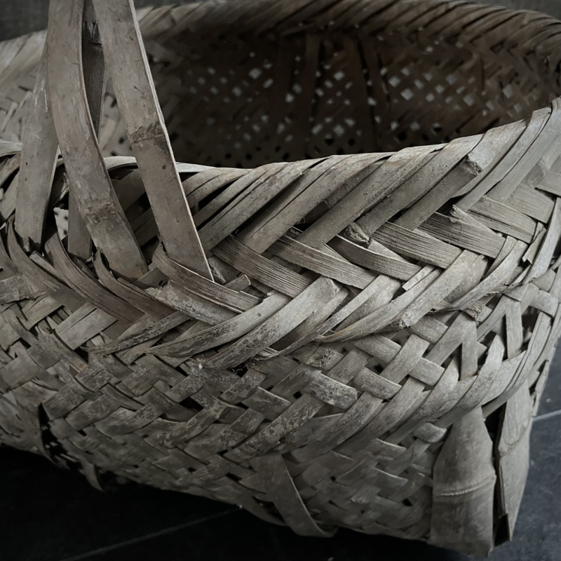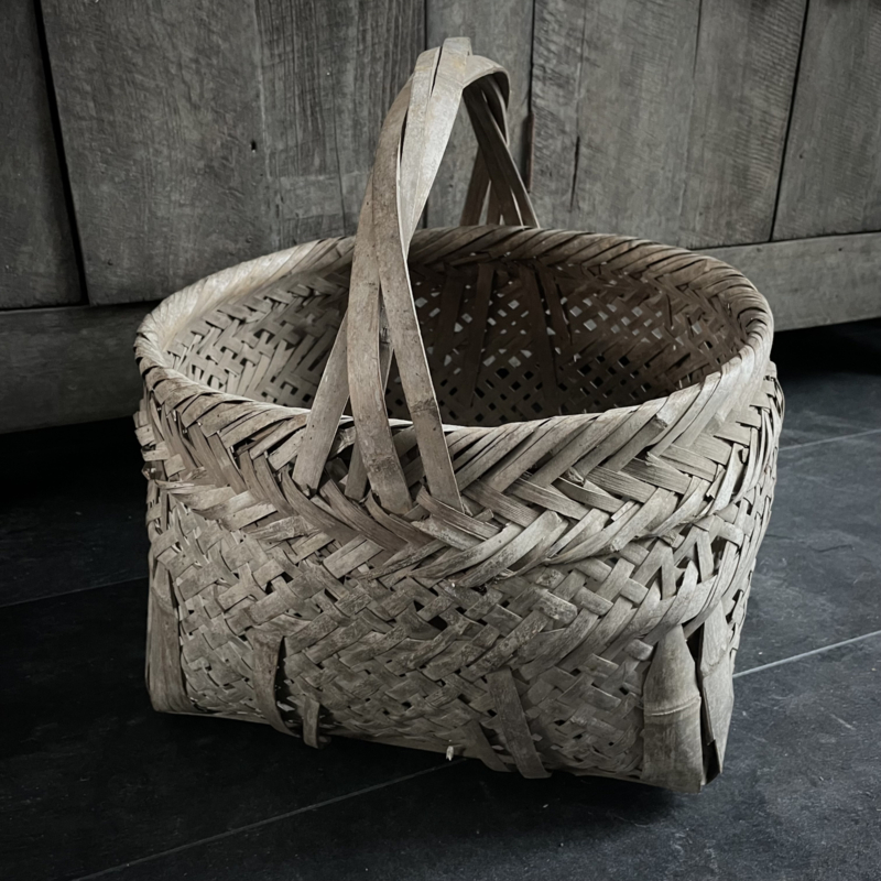 Prachtige oude originele plukmand afkomstig uit China, handgevlochten van natuurlijke materialen zoals bamboe. Deze mand werd traditioneel gebruikt bij het oogsten van thee of landbouwproducten. Door het doorleefde patina heeft de mand een authentieke en karaktervolle uitstraling. Erg mooi in een landelijk en sober interieur, ook leuk voor in de badkamer met opgerolde handdoeken of op de kinderkamer om speelgoed mooi in op te bergen. De hoogte is 45 cm, de breedte is 45,5 cm en de diepte is 43 cm.