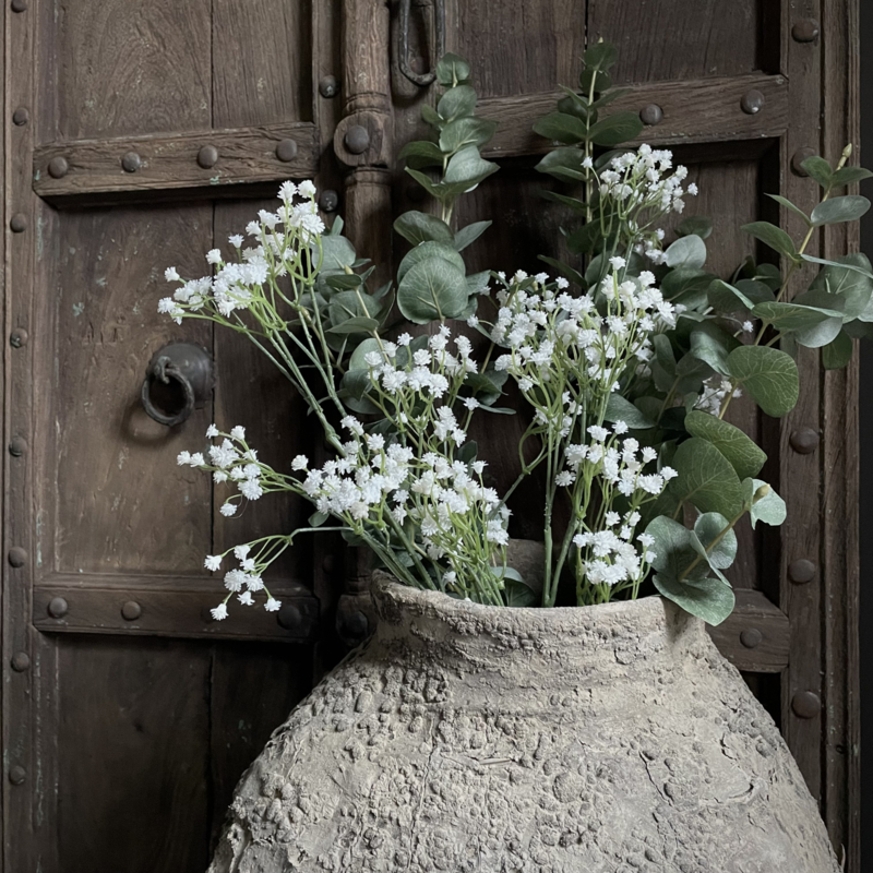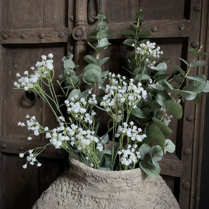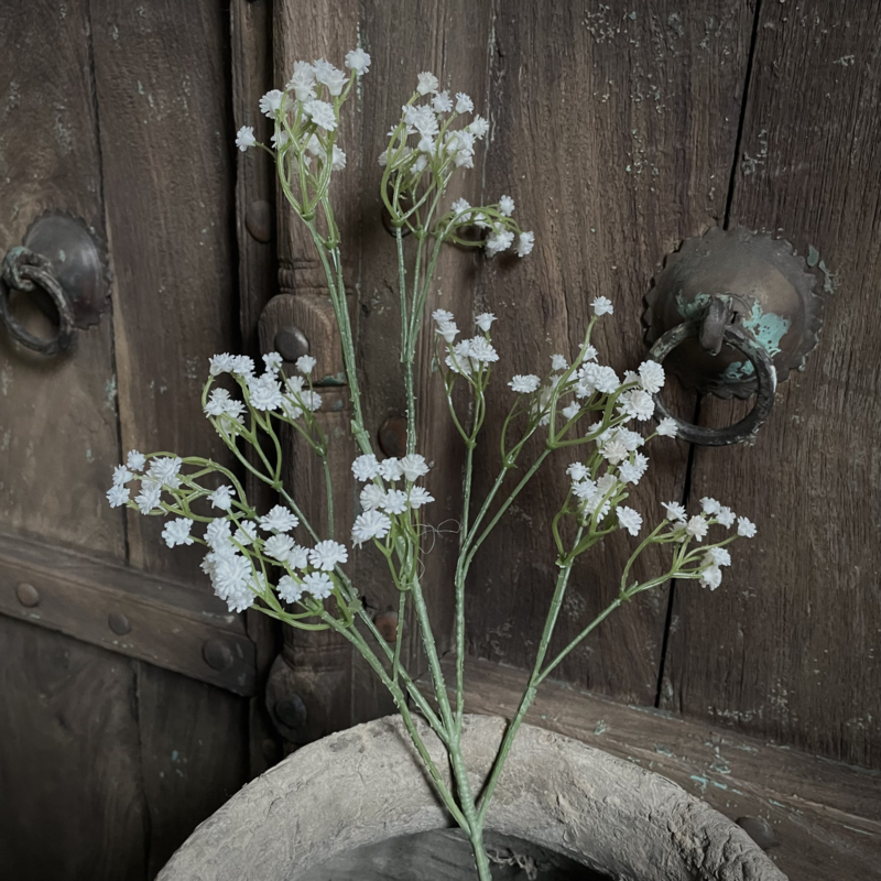 Deze prachtige kunsttak van gipskruid is een echte sfeermaker. Stijlvol, onderhoudsvrij en ideaal te combineren met een eucalyptus tak of toef voor een natuurlijke uitstraling. De totale lengte is 64 cm. Een prachtige voorjaarstak voor jarenlang plezier. Leuk in een houten kruik of pot, ook mooi in een schaal.