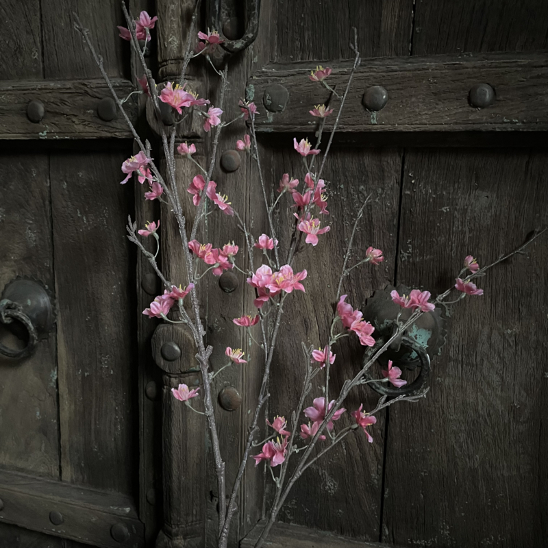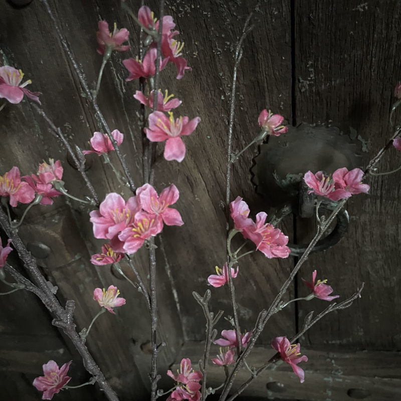 Pachtige tak met een donkere steel en subtiele zijden roze bloemen. erg mooi in combinatie met hout en andere natuurlijke materialen. Geeft het interieur een frisse lichte lentesfeer en is mooi op zichzelf of combineer ze samen met andere takken. De totale lengte is 86 cm. Een prachtige voorjaarstak voor jarenlang plezier. Leuk in een houten kruik of pot, ook mooi in een schaal.