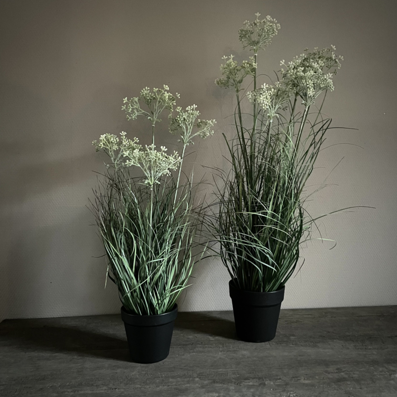 Breng eenvoudig een natuurlijke uitstraling in huis met deze kunst plant gras/ wildwortel. De fijne sprieten en witte bloemknopjes zorgen voor een realistische look, zonder onderhoud. Ideaal voor elk interieur, van modern tot landelijk. Blijvend mooi, zonder water of verzorging. Het gaat hier om de kleinste op de foto's, met een hoogte van 60 cm, de diameter van de pot is 12,5 cm, de hoogte is 10 cm.