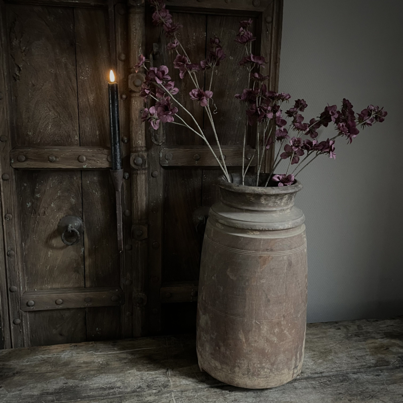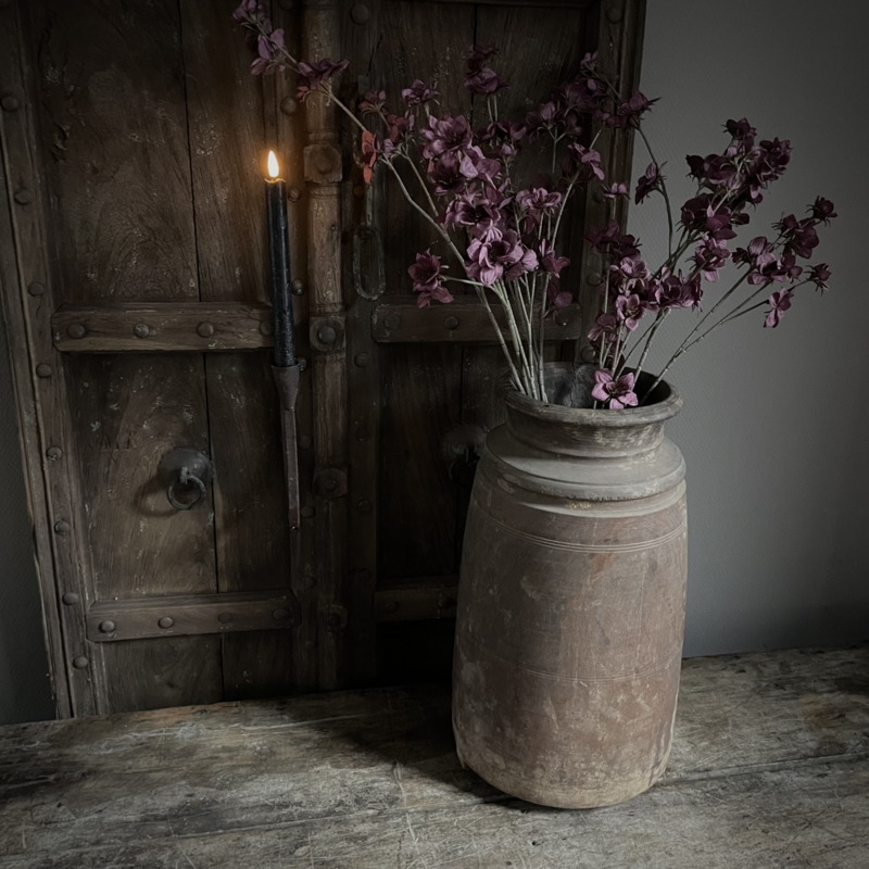 Deze zijden kunsttak met 9 vertakkingen in een diepe warme burgundy kleur zorgt voor een volle en luxe uitstraling en blijft het hele jaar door mooi. Perfect om los te stylen in een vaas of pot, maar ook ideaal om te combineren met andere 'kunst' takken voor een natuurlijk effect. De totale lengte is 105 cm.