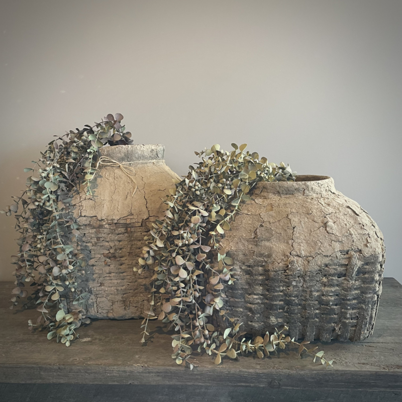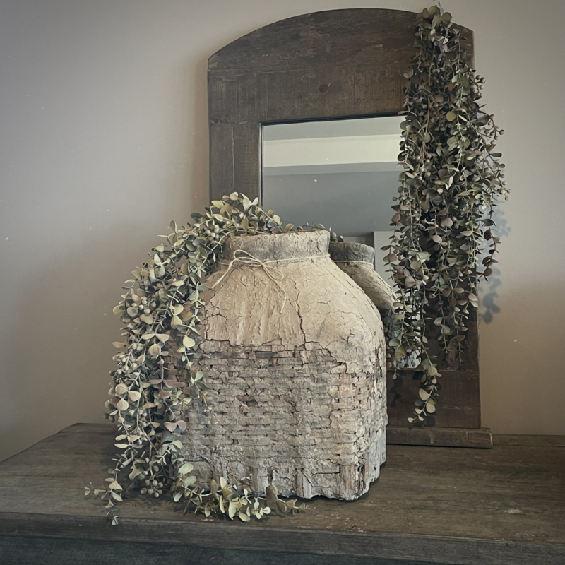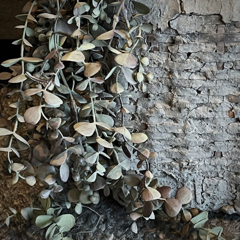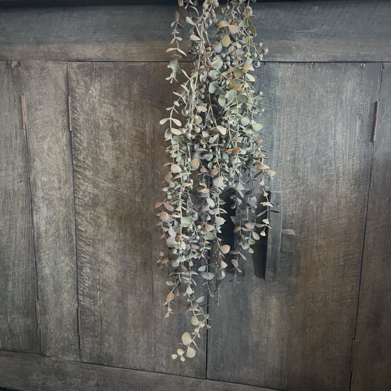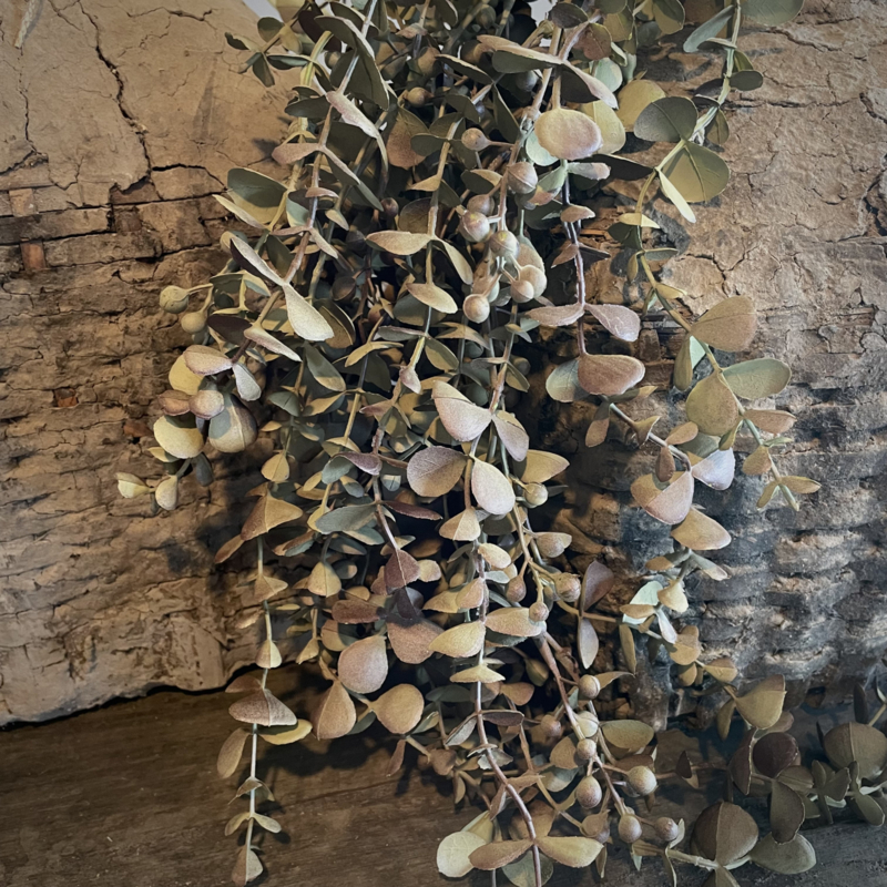 Volle kunst eucalyptus toef met een mooie natuurlijke uitstraling. Perfect om een schaal of mand mee te vullen en ook prachtig als decoratie aan een kast, luik,deur of spiegel, in alle jaargetijden. De totale lengte is 95 cm.