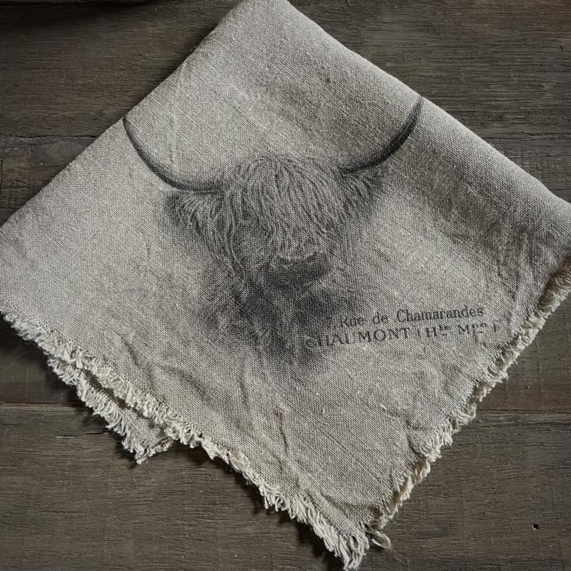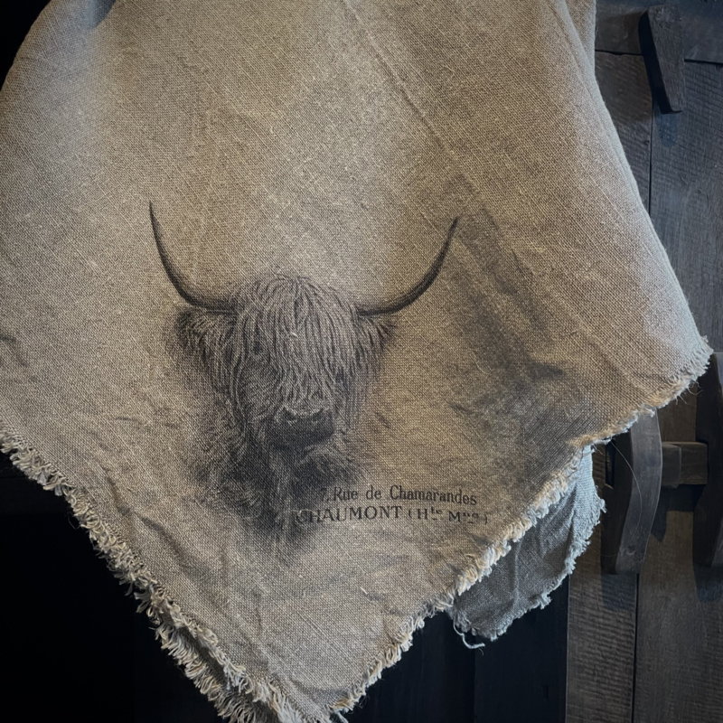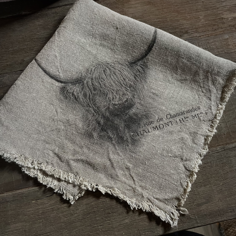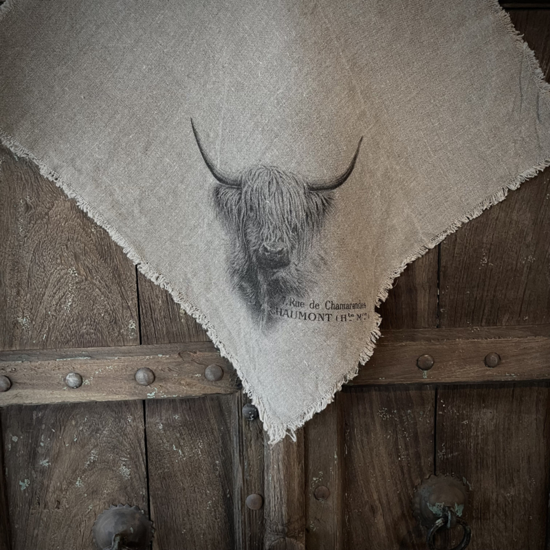 New shabby sierdoek 45×45 cm, alle zijdes zijn voorzien van rafels, bedrukt op de punt van de doek. Hooglander