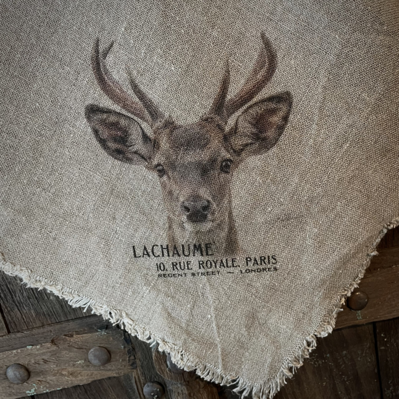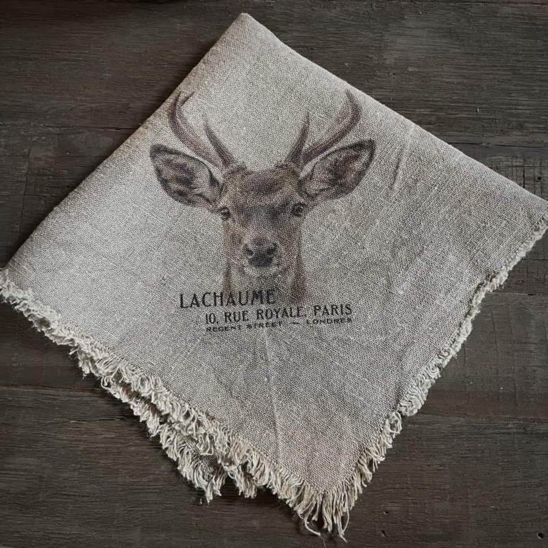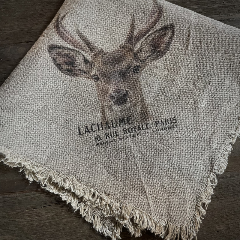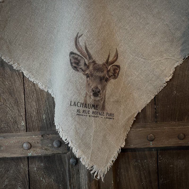 New shabby sierdoek 45×45 cm, alle zijdes zijn voorzien van rafels, bedrukt op de punt van de doek. Ree