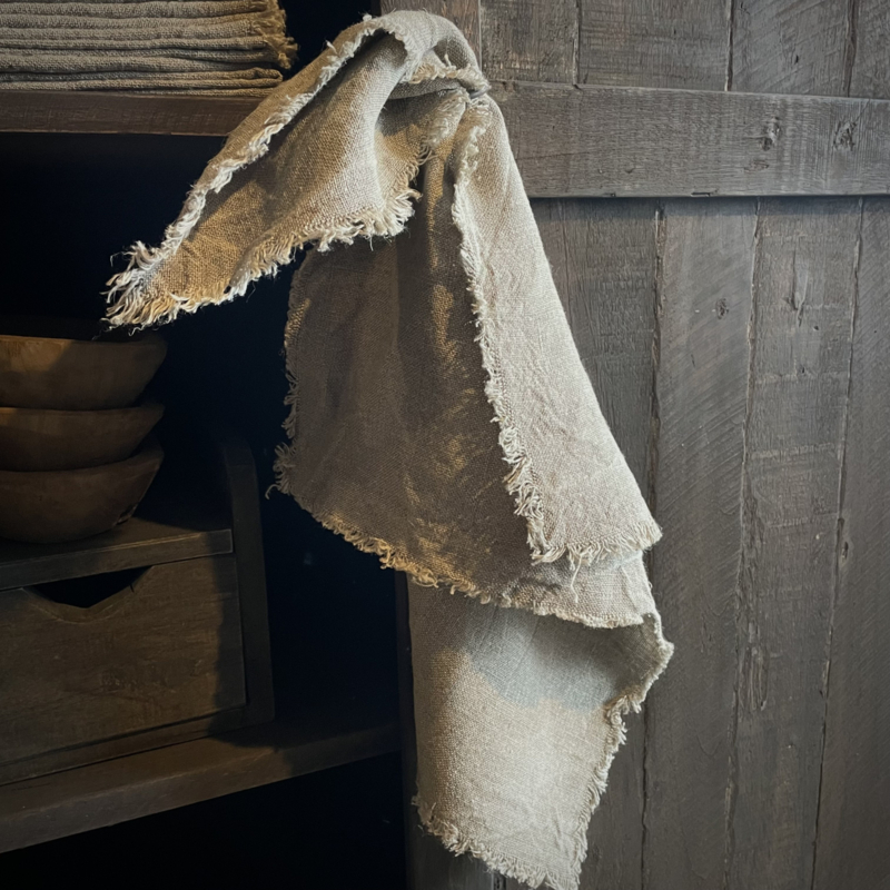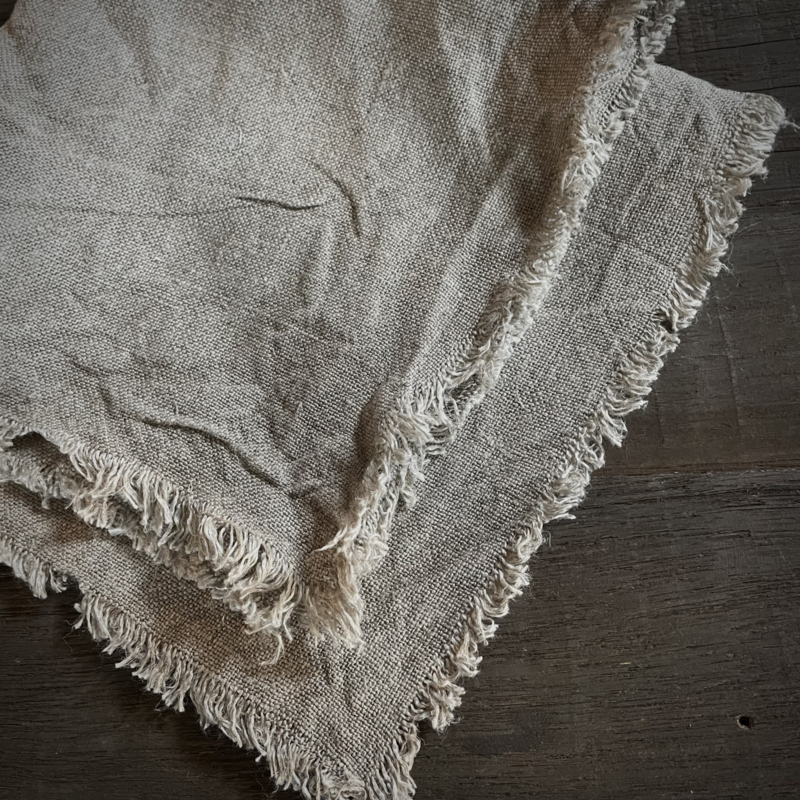 New shabby sierdoek 45×45 cm, alle zijdes zijn voorzien van rafels. Naturel