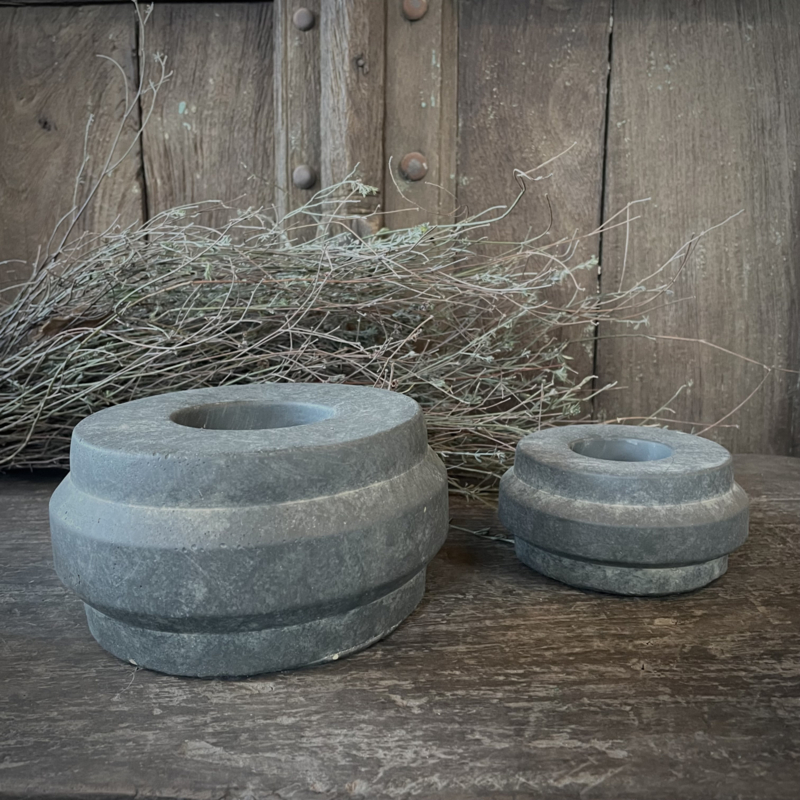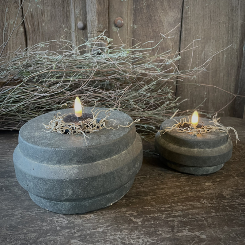 Aardewerken kandelaar van het merk Brynxz. Leuk met een waxinekaarsje of een klein stompkaarsje, verkrijgbaar in 2 afmetingen, leuk om samen te combineren. De hoogte is 5 cm, de diameter is 11 cm.