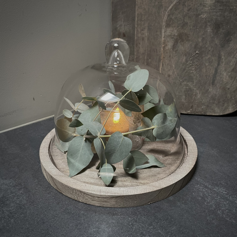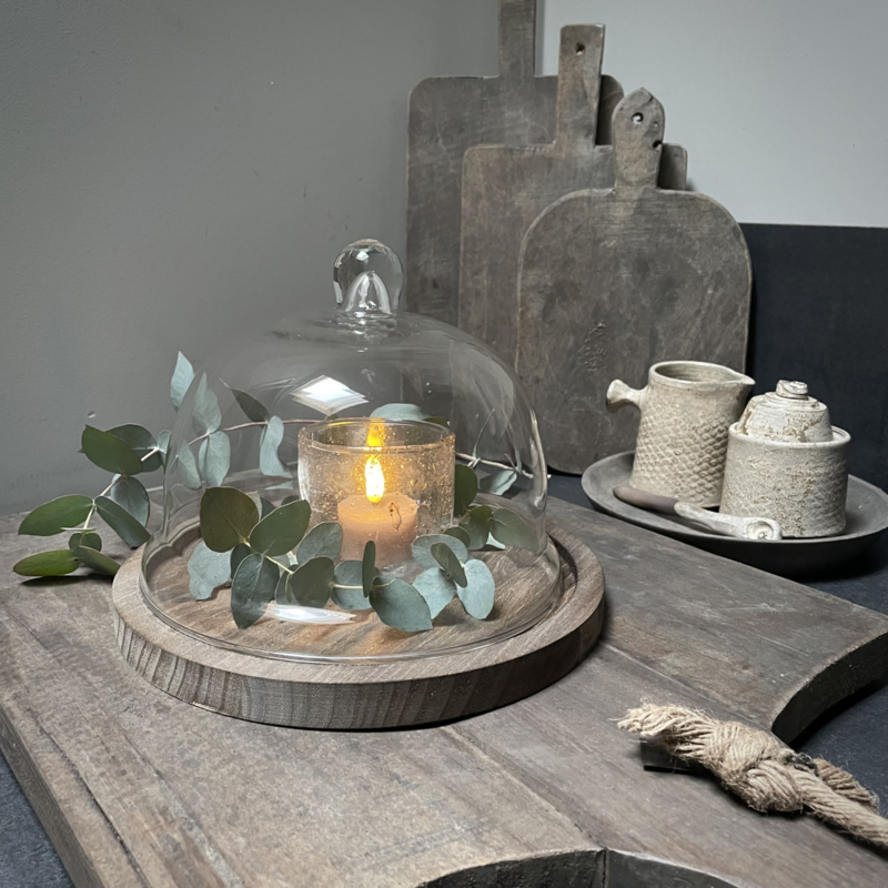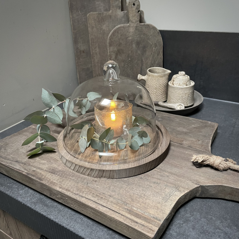 Prachtige stolp van het merk Clayre & Eef. Ideaal om elk seizoen sfeervol te decoreren. Mooi met kunst takken, ledkaarsjes of andere favoriete vondsten, perfect als blikvanger op een tafel, dressoir of open kast. Een tijdloos en sfeervol item. De hoogte is 17,5 cm, de diameter is 23 cm. (Exclusief decoratie, de complete set is op foto 2 afgebeeld.