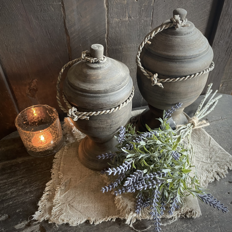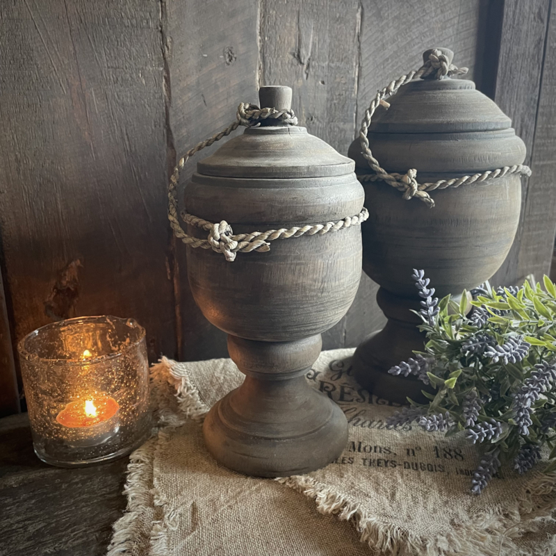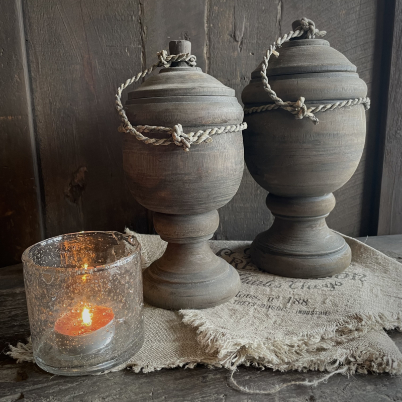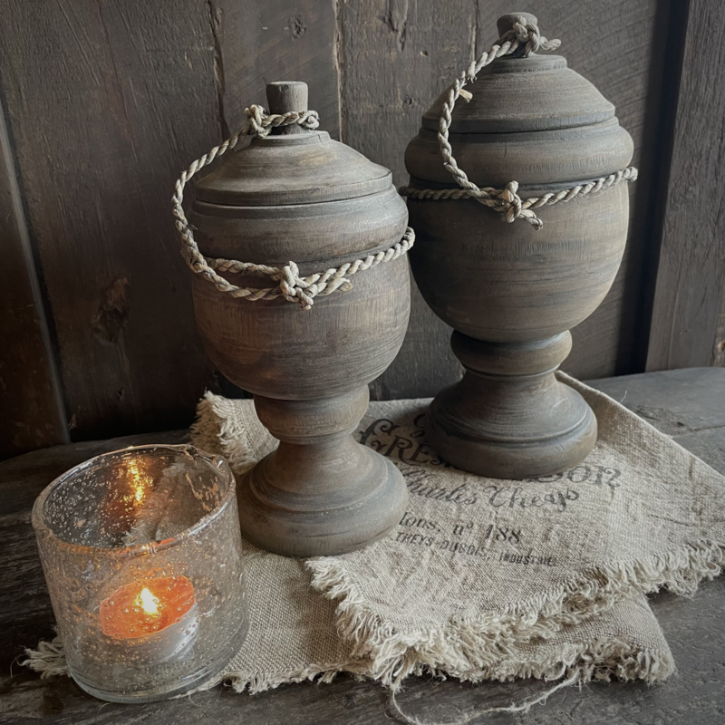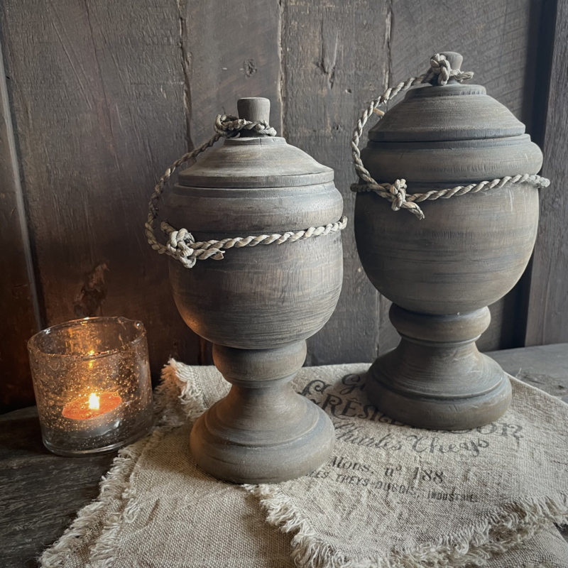 Houten bokaal met deksel (M) (H 22,5 cm)