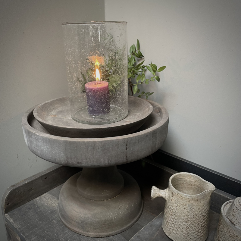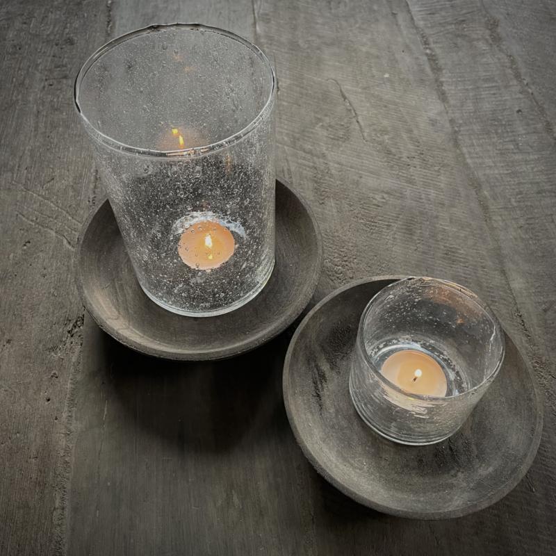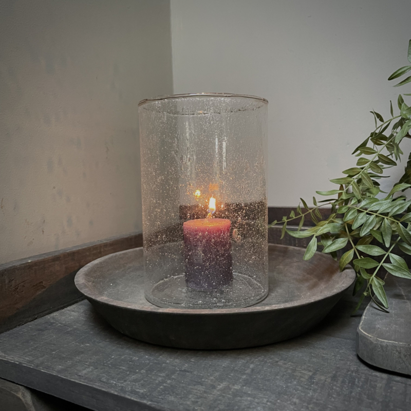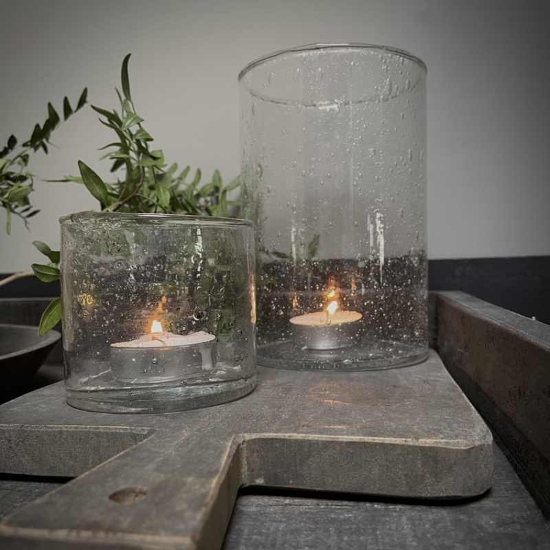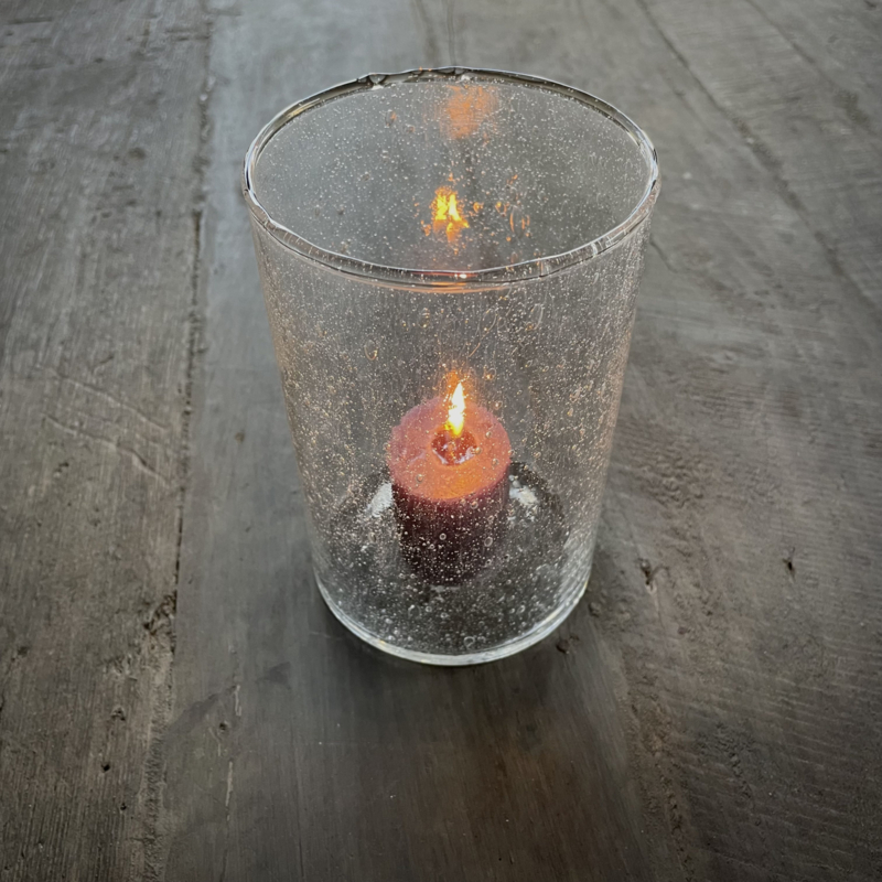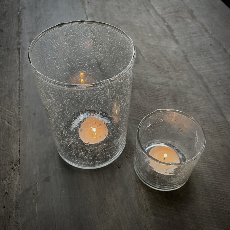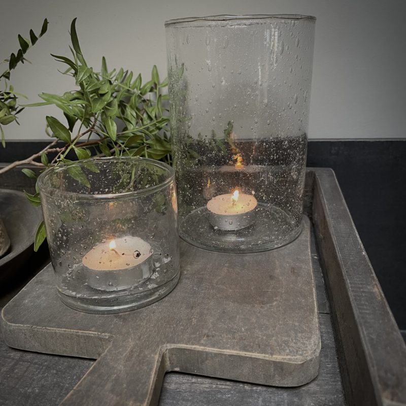 Bubbel windlicht dat zorgt voor een warme en gezellige uitstraling. Mooi in een schaal met een LED-kaars of, zoals afgebeeld met een stompkaarsje of theelicht. Ook prachtig om meerdere windlichten te combineren. De hoogte is 15 cm en de diameter is 10 cm.