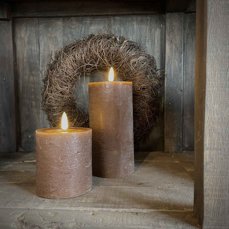 LED wax stompkaars choco bruin S ( H 8 cm)