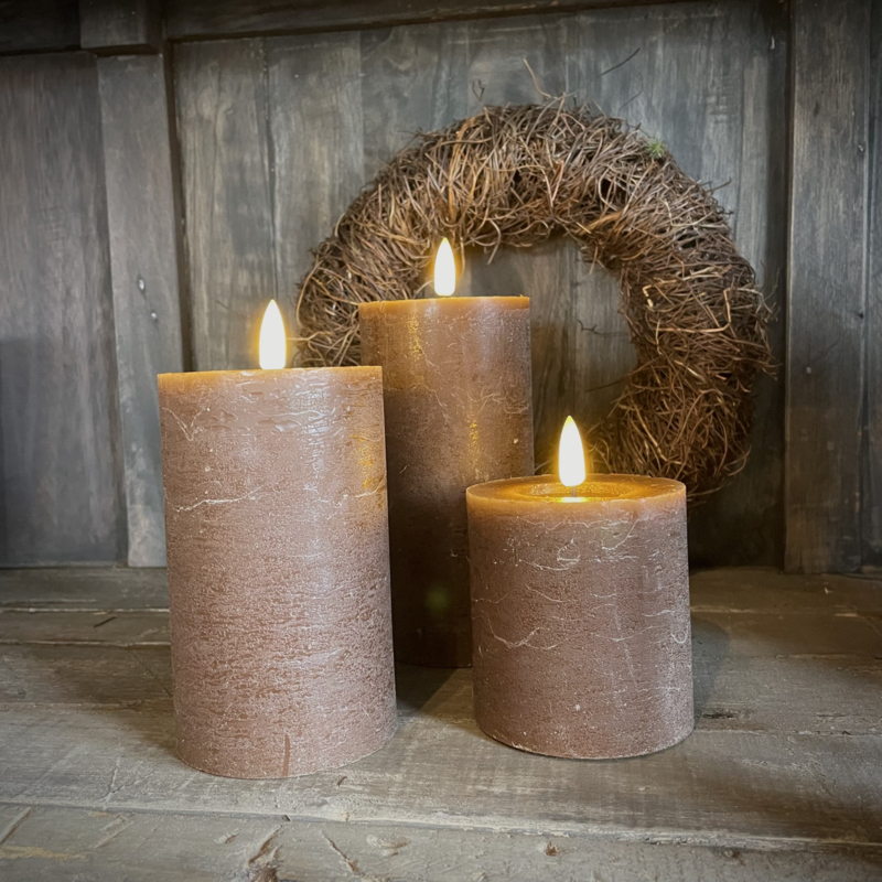 LED wax stompkaars choco bruin M ( H 12,5 cm)