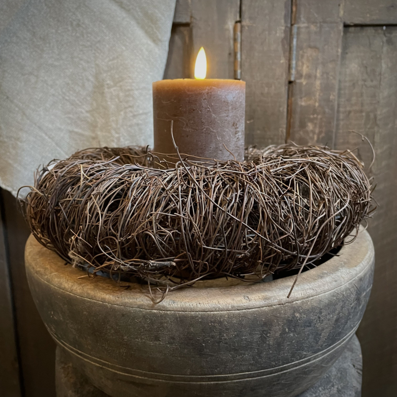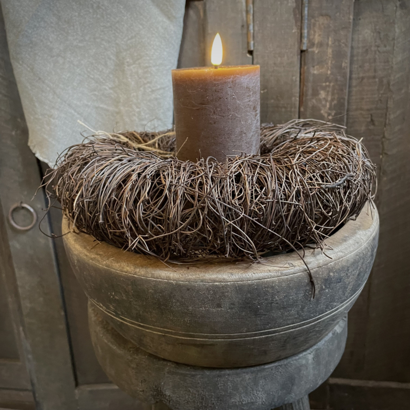 Stompkaars in de kleur chocolade bruin wax rustiek met 3D lont. De hoogte is 15 cm en de diameter is 7,5 cm.