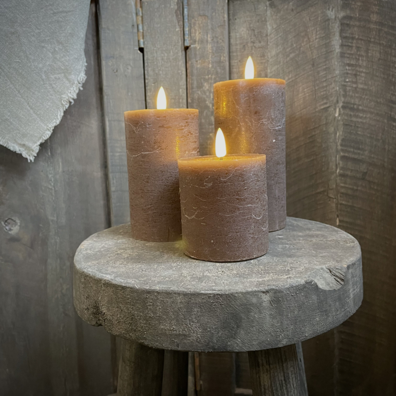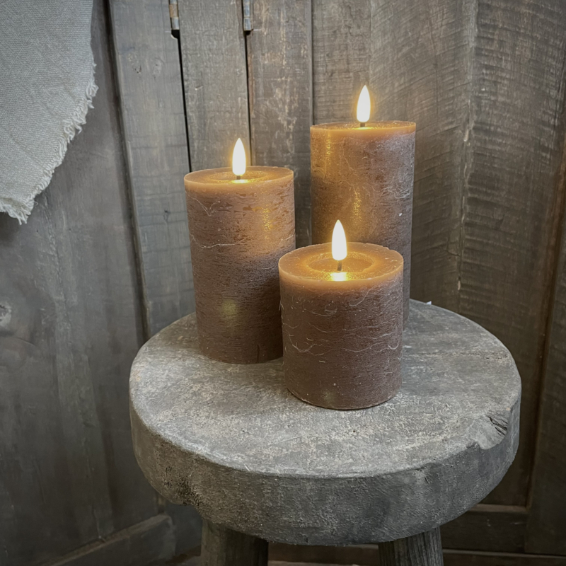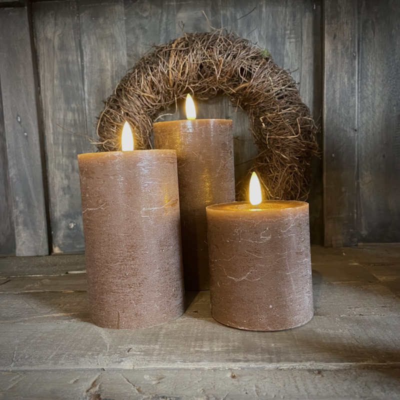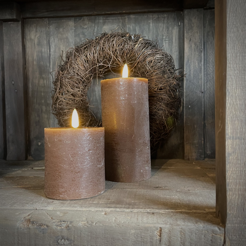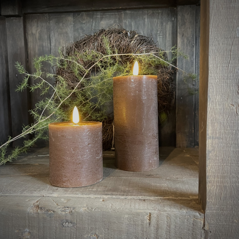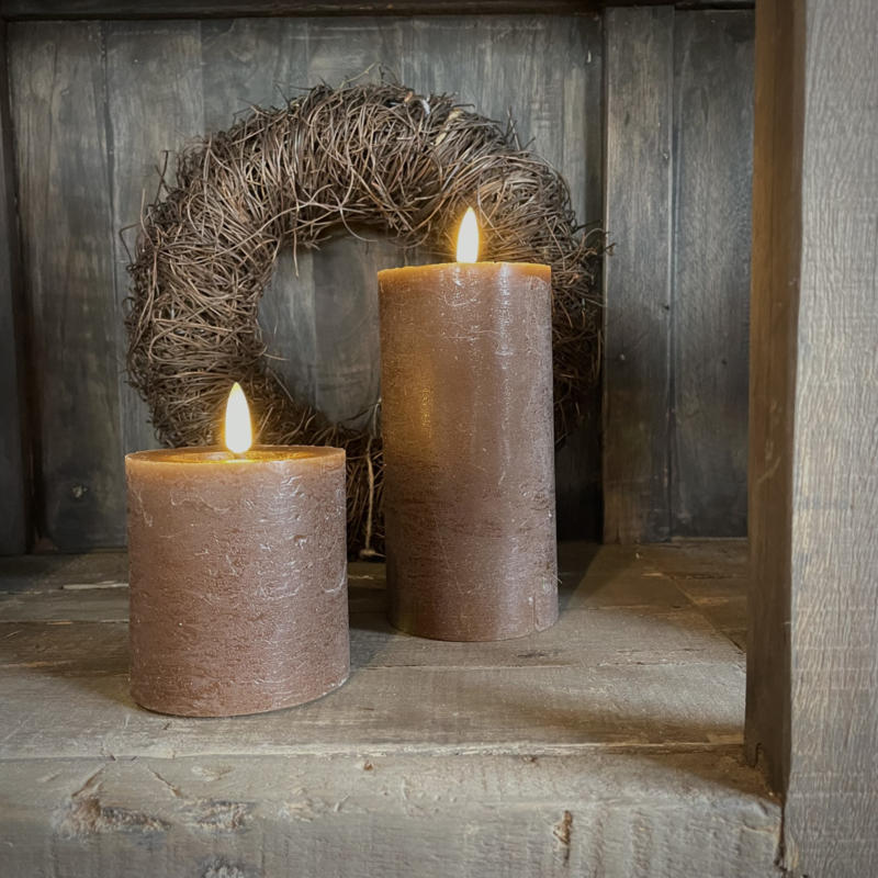 LED wax stompkaars choco bruin L ( H 15 cm)