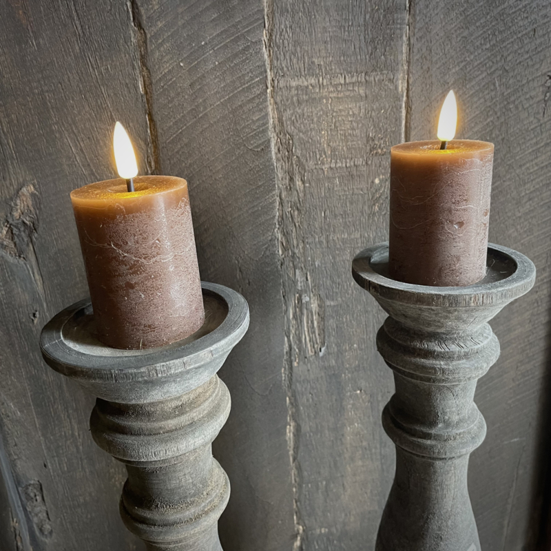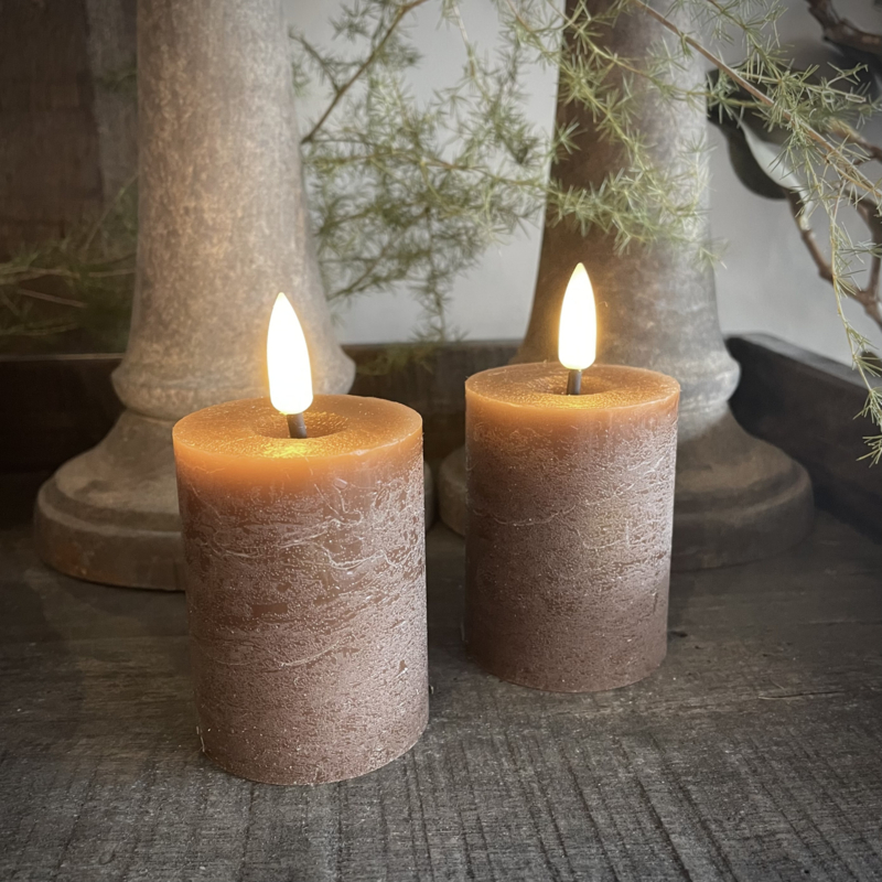 Set van 2 LED wax stompkaarsen Choco ( H 9,5 cm)