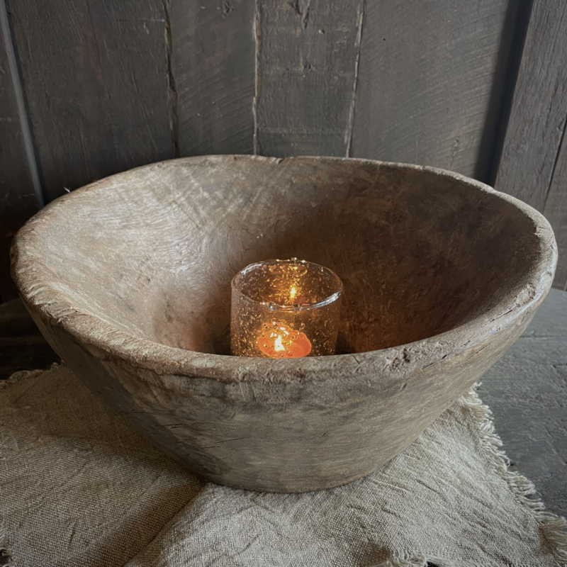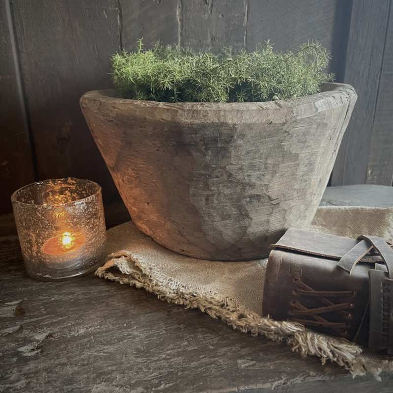 Oude vijzel ( Dia 34 cm)Deze oude houten vijzel is een echte blikvanger met zijn prachtig verweerde uitstraling en robuuste gewicht. Het doorleefde hout geeft een uniek karakter en een warme landelijke sfeer. Op vele manieren te stylen, plaats er een…